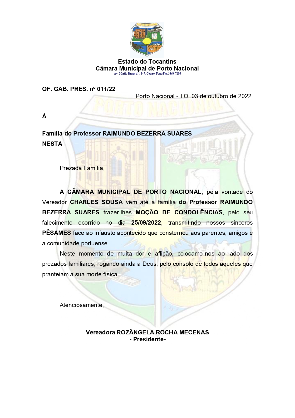 Moção de Condolência nº11/2022