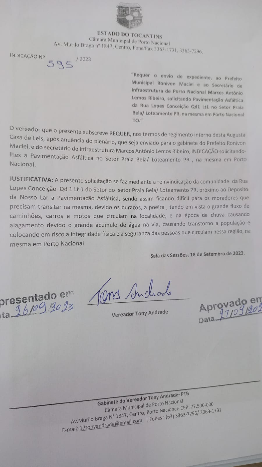 Indicação Nº 595/2023